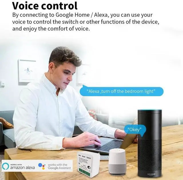 [Hands-Free Voice Control]:The smart WiFi switch helps you control home devices with voice and hands-free via Amazon Alexa or Google Home Assistant.Once given a simple voice command, it will switch on/off light or other devices(Note: Not dimmable). That brings you the charm of the smart switch other than tedious handwork.