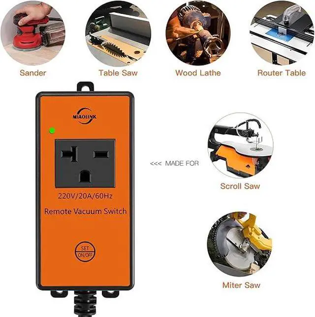 Remote remotes are capable of controlling multiple vacuum remote switched outlet units simultaneously. They are suitable for vacuum cleaners, dust collector, track saw,miter saws, table saws power supplies, work lights, air compressors and various other tools. The remote control signal can penetrate walls. If there is no obstruction, the signal can be transmitted up to 50 meters.