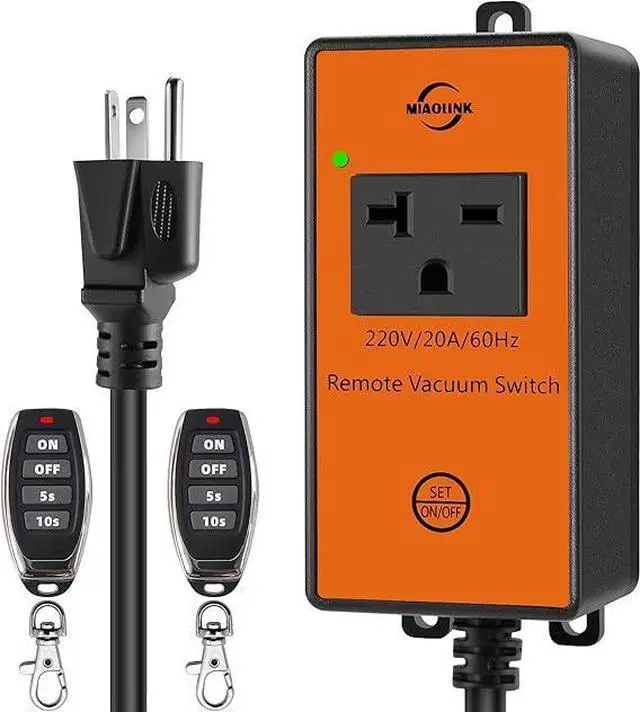 Delayed shutdown function: You can choose how to shut down immediately, or delay for 5 seconds or 10 seconds. Using the delay function helps clear the vacuum hose, and you don't have to stand and wait, you can continue doing other things. When the delay time is up, remote control outlet will automatically shut down.
