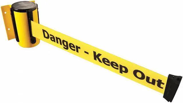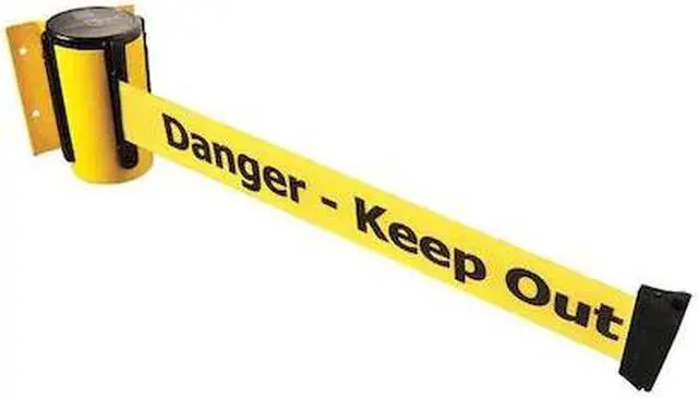 Retractable Belt Barrier, Belt Length 13 ft, Belt Color Yellow, Legend Danger Keep Out, Legend Color Black, Frame Color Yellow, Number of Belts 1. This item has been restricted from sale in the following state (s): []