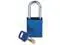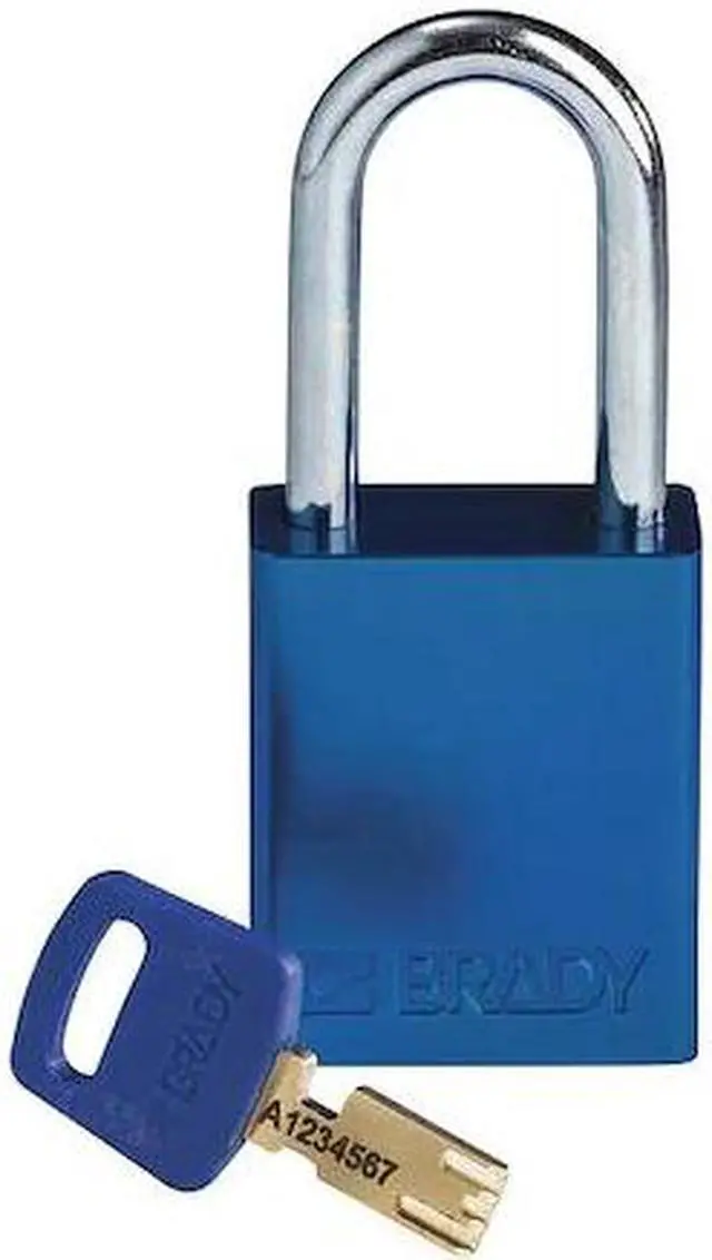 Lockout Padlock, Body Color Blue, Body Height 1 13/16 in, Body Material Aluminum, Body Thickness 3/4 in, Body Width 1 1/2 in, Header Danger, Horizontal Shackle Clearance 13/16 in, Key Style Linear, Key Type Keyed Different, Non-Removable Key No, Resistance Properties Corrosion Resistant, Shackle Diameter 1/4 in, Shackle Height 1 1/2 in, Shackle Material Steel, Shackle Type Open, Vertical Shackle Clearance 1 1/2 in, Width Across Shackle 13/16 in, Body Material Coating Anodized