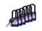Lockout Padlock, Body Color Purple, Body Height 1 3/4 in, Body Material Nylon, Body Thickness 13/16 in, Body Width 1 1/2 in, Header Danger, Horizontal Shackle Clearance 13/16 in, Key Style Standard, Key Type Keyed Alike, Non-Removable Key Yes, Resistance Properties Chemical Resistant, Corrosion Resistant, Temperature Resistant, Shackle Diameter 1/4 in, Shackle Height 1 1/2 in, Shackle Material Nylon, Shackle Type Open, Vertical Shackle Clearance 1 1/2 in, Width Across Shackle 3/4 in