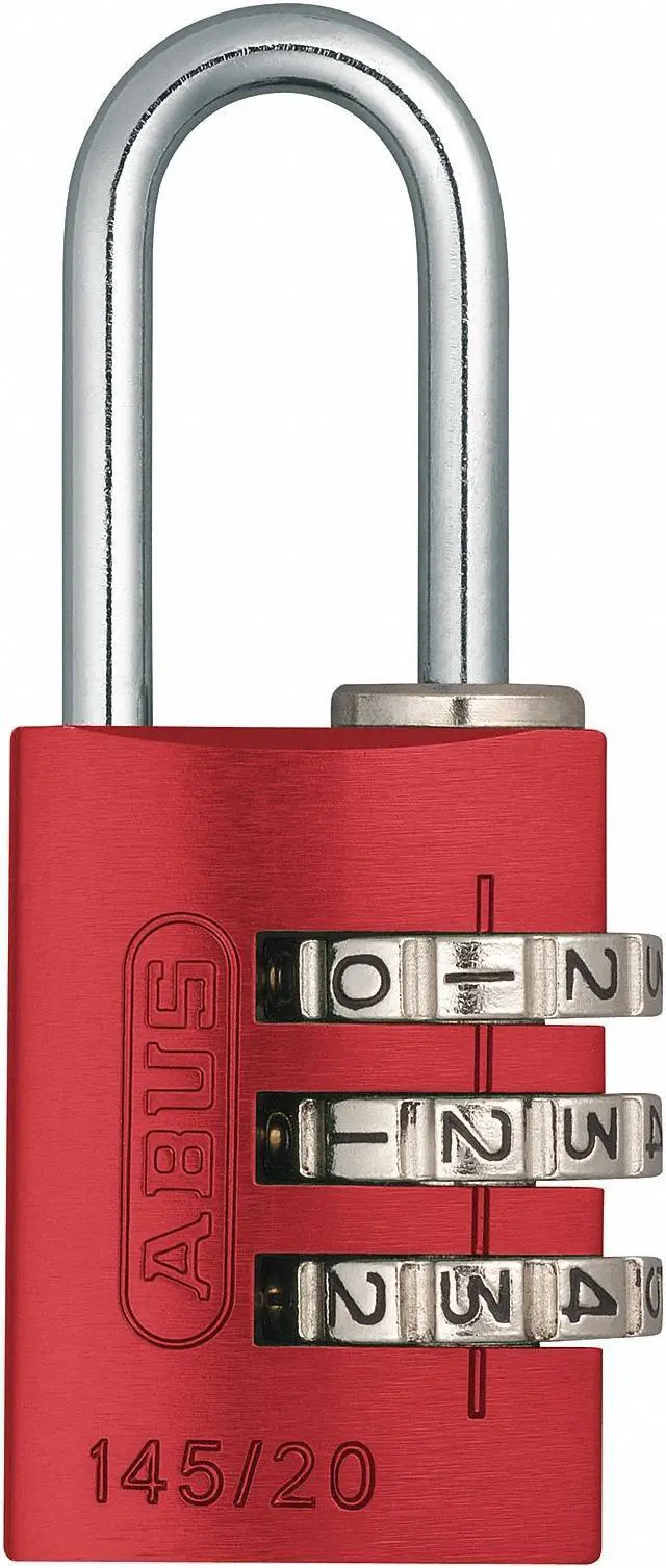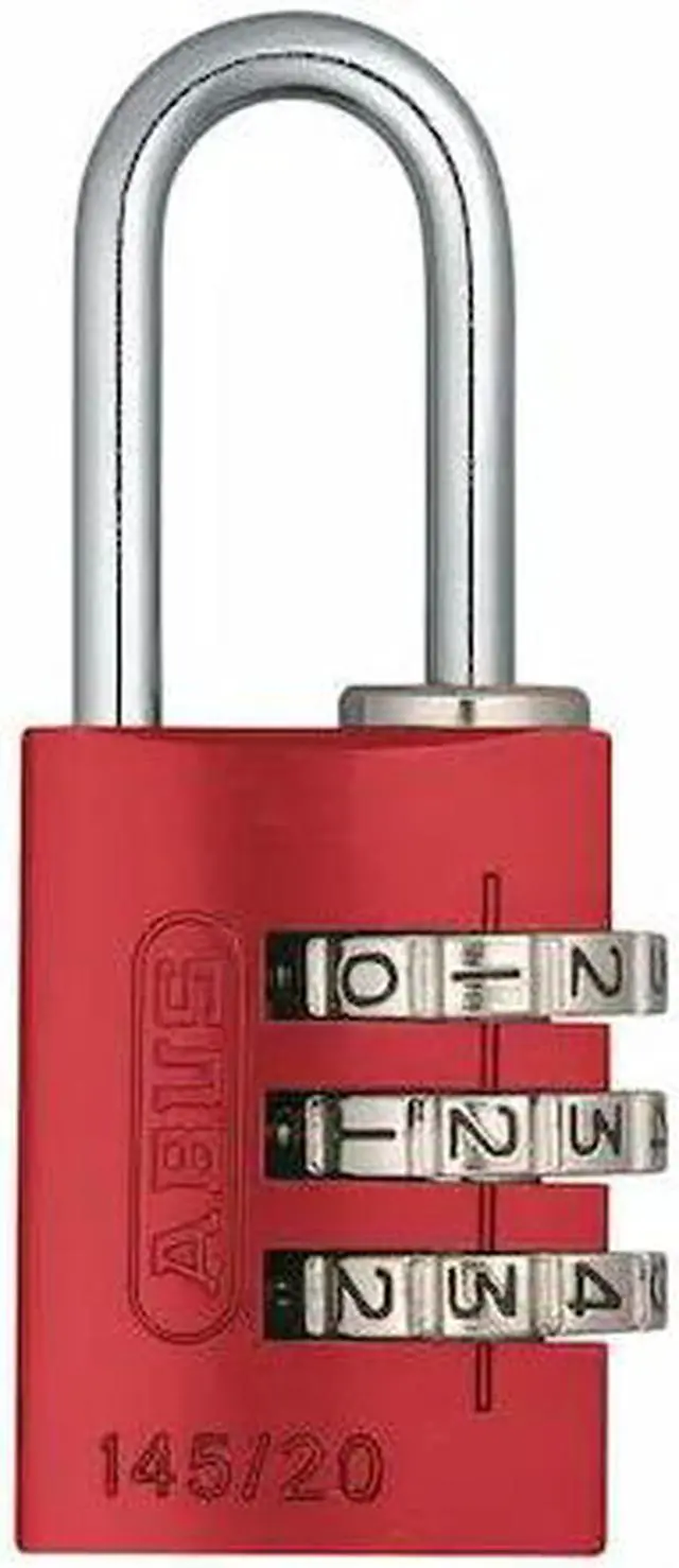 Luggage Padlocks, Body Finish Anodized, Body Height 1 1/8 in, Body Material Aluminum, Body Thickness 17/32 in, Body Width 57/64 in, Body Color Red, Dial Location Side, For Use With Cabinets, Office Environments and Equipment, School, Employee and Athletic Lockers, Storage Lockers, Key Control No, Key Type Combination, Number of Bumpers 0, Number of Dials 3, Resettable Resettable, Shackle Dia. 1/8 in, Shackle Height 7/8 in, Shackle Material Steel, Shackle Width 5/16 in, Weather Resistant Yes