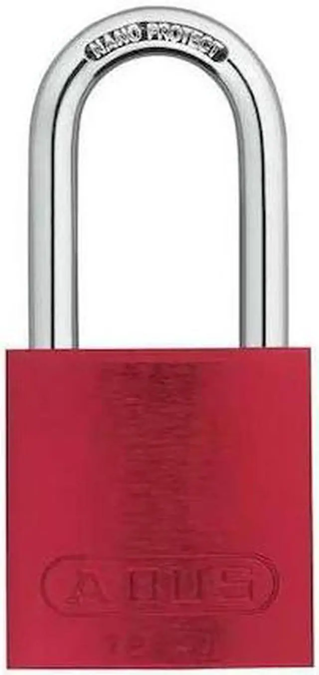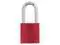 Keyed Padlock, Key Type Different, Body Material Aluminum, Shackle Dia. 1/4 in, Shackle Height 1 1/2 in, Shackle Material Chrome Plated Hardened Steel, Shackle Width 3/4 in, Body Width 1 1/2 in, Body Thickness 3/4 in, Includes Nickel Plated Brass Key, Body Height 1 5/8 in, Body Color Red, Shackle Type Open, Number of Bumpers 0, Control Key Registration Required No, Package Quantity 3. This item has been restricted from sale in the following state (s): []