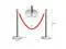 Red velvet, polished hooks and poles lend an upscale look to this stanchion barrier