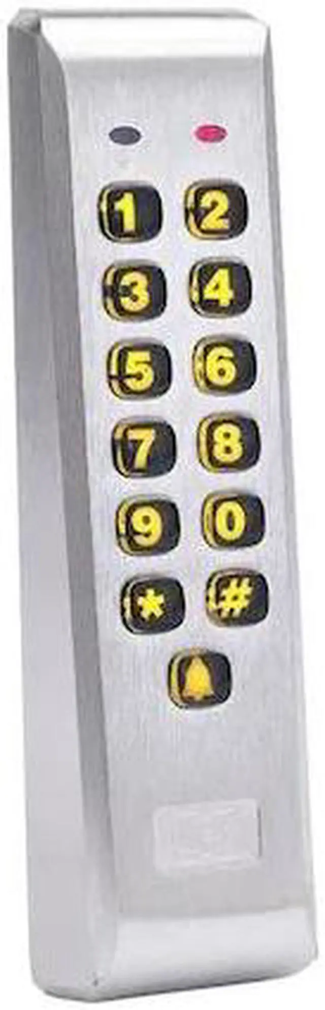 Access Keypad Mullion, Type Indoor/Outdoor Mullion Mount Weather Resistant Keypad, Switch Action SPDT, Material Cast Aluminum Housing/Plastic Buttons, Finish Painted, Depth 1-1/8 In., Height 6-1/2 In., Width 1-5/7 In., Button Color Silver, Color Black, Input Voltage 12 to 24VAC/DC Auto Adjusting, Output SPDT Relay, Amps AC 5A, Form C @ 24VDC, Operating Temp. 20 Degrees to 130 Degrees F, Event Audit Trail No, Max. User Codes 120, Keypad 13 Button, Cylinder No