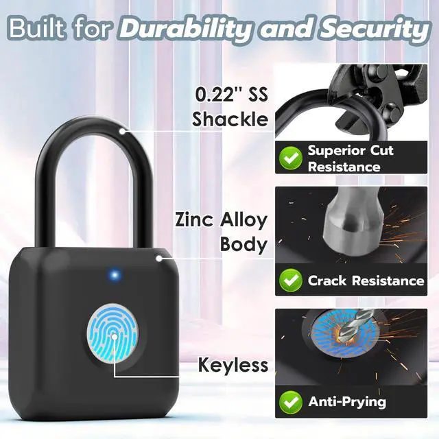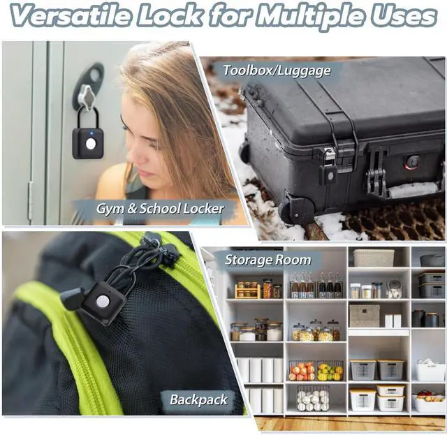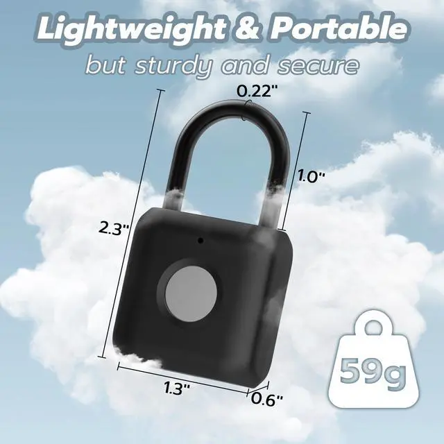 Sturdy and CompactThe smart padlock is made of stainless steel shackle and zinc alloy body, sturdy and durable, safe and reliable. Only 59g weight and just the right size in your hand can be carried anywhere you go. Compact design can be used in schools, gyms, luggage,toolboxes,backpacks and more.