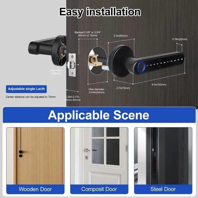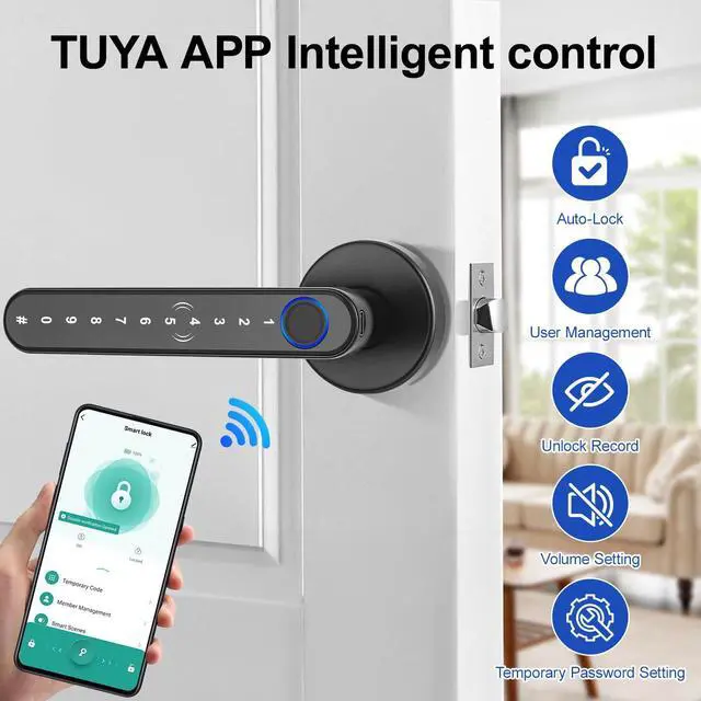 • Management via Tuya App: As a Bluetooth Smart Lock, it grants you full control from anywhere. Grant temporary or recurring access codes for guests and service providers,receive instant notifications on lock activities, and check the status in real-time.