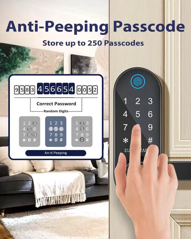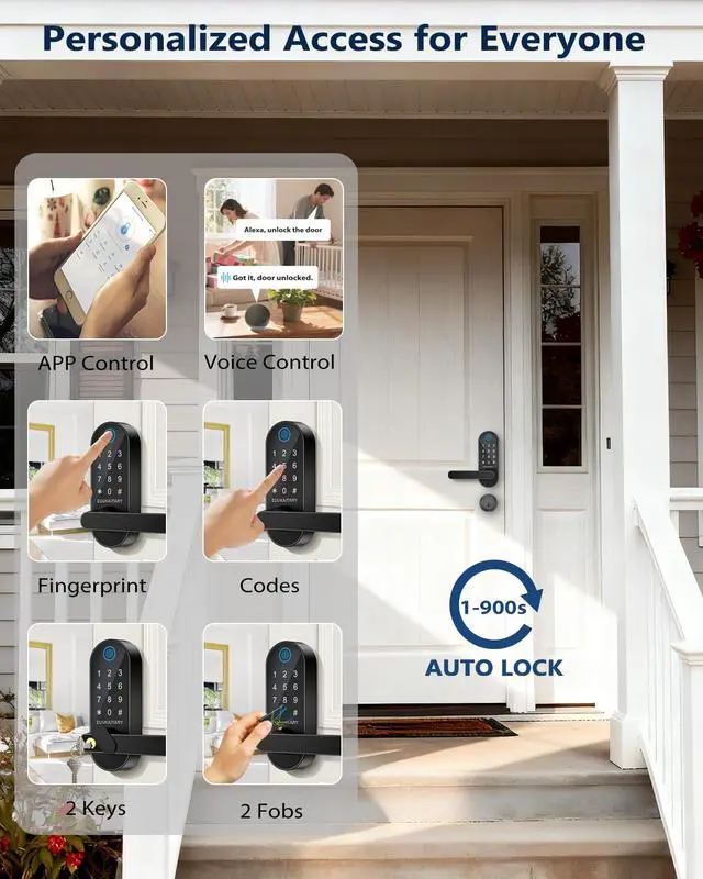 The lock supports multiple users with fingerprints and passcodes, allowing families, guests, or staff to each have their own access method.