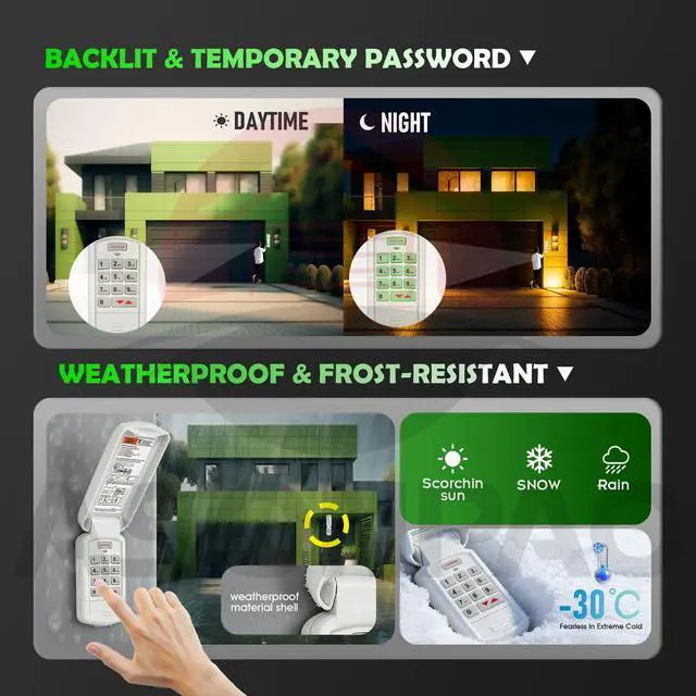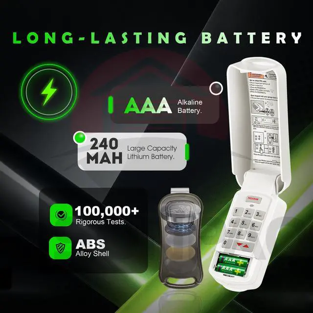 Wireless & Tool-Free Installation + Industrial Grade Chip This Overhead Door Garage Door Opener Keypad Mounts In Minutes With No Wiring Required, And Features An Industrial Grade Chip For Reliable Performance In Both Extreme Heat And Sub-Zero Cold.