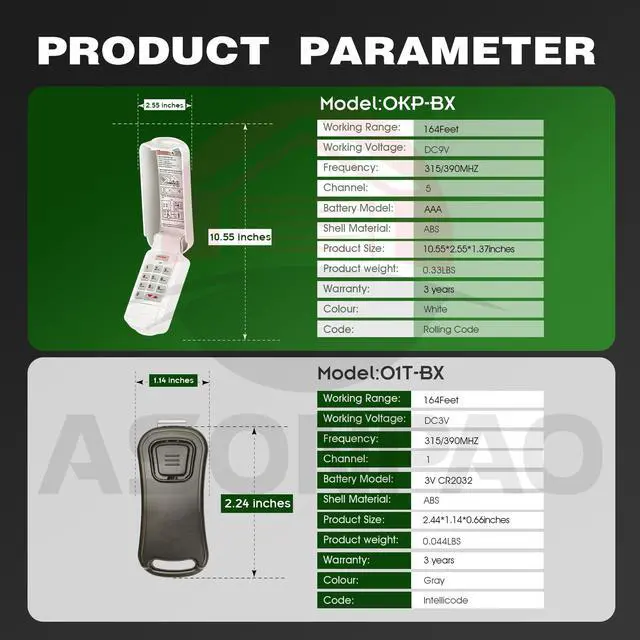 Overhead Door Garage Door Opener Keypad & Remote OKP-BX O1T-BX, 5 Year Warranty