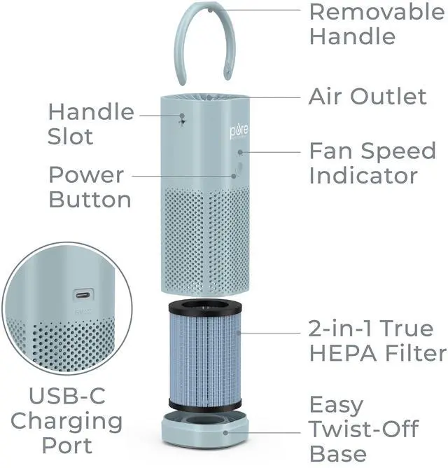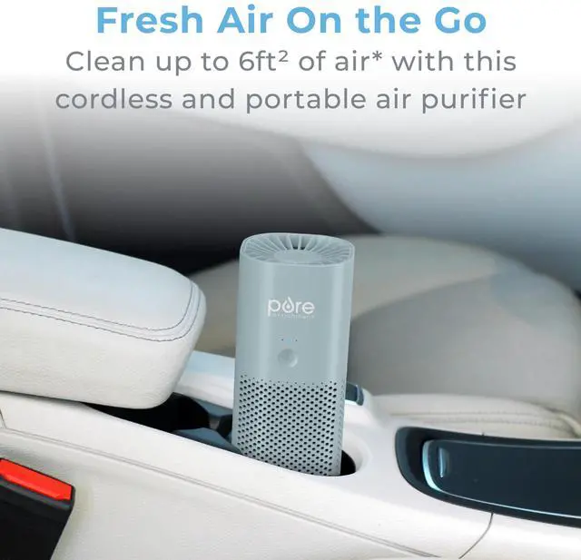 Breathe fresher air on-the-go with the PureZone Mini Portable Air Purifier from Pure Enrichment. Enjoy improved air quality as the premium, 2-stage filter safely cleans the air around you, up to 6ft² of air in 12 minutes*. With its lightweight and versatile design, its easy to carry this small air purifier from room to room as it helps to reduce common airborne irritants like dust, pollen, pet dander, smoke, and other odors. Ideal for desktops, tray tables, and car cup holders, PureZone Mini is the perfect solution to help allergy and asthma sufferers make their personal space more comfortable for breathing.