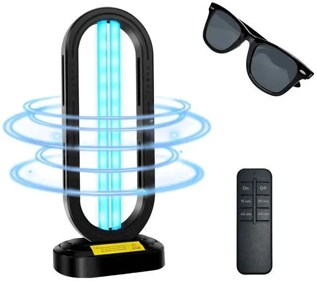 UV Light Sanitizer,4-Speed Timing and Remote Control UVC Home Disinfection Device,Portable Ultraviolet Light Sanitizer Effectively Mold Remover and Dust Mites,UV Lamp for Whole Room,Black