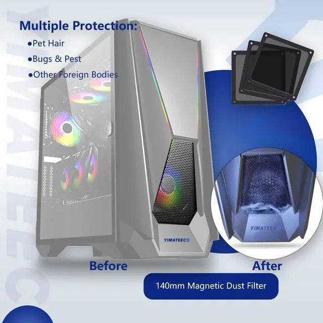 · PC dust filter cover grills, reduce the cleaning time of fans and parts, extend their working life, even if the filter is dirty, it is very easy to clean and replace.