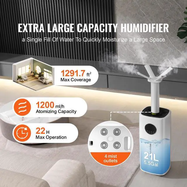 Humidifying area: 473.6 - 1291.7 ft² / 44-120 m²
