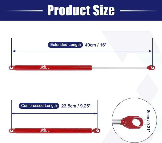 Note: Do not compress them by hand before installation, the struts could only be compressed after installing successfully. After installation, the lid/cover would be opened or closed smoothly. Working temperature: -25 Degree Celsius—70 Degree Celsius.