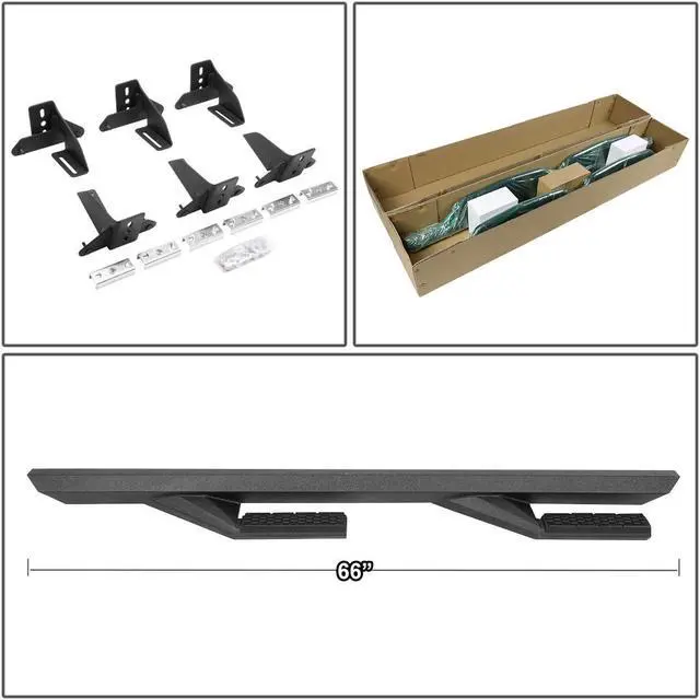 Constructed from high quality grade steel frames, you can be sure this running board will withstand the roughest of weather conditions as well as the test of time. They are built tough and are highly corrosion resistant. Getting in and out of your vehicle is easy with the large non-skid molded pads that ensure secure footing. No drill installation! These running boards are very easy to install with the brackets fitting right into the existing factory holes. By not having to not drill in to your vehicle, your time and effort is saved by you.