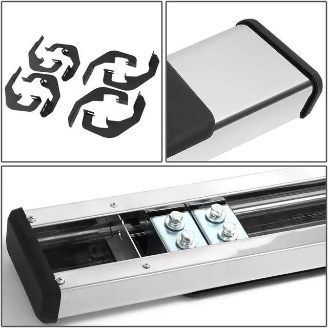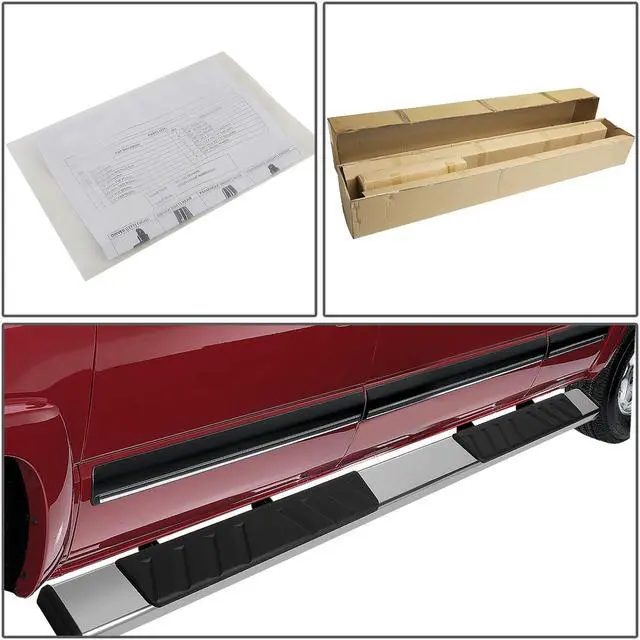 Constructed from high quality grade aluminum frames, you can be sure this running board will withstand the roughest of weather conditions as well as the test of time. They are built tough and are highly corrosion resistant. Getting in and out of your vehicle is easy with the large non-skid molded pads that ensure secure footing. No drill installation! These running boards are very easy to install with the brackets fitting right into the existing factory holes. By not having to not drill in to your vehicle, your time and effort is saved by you.