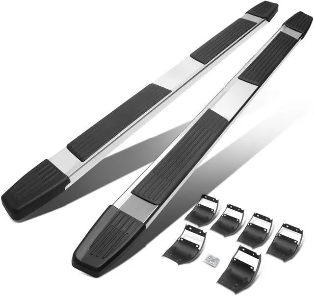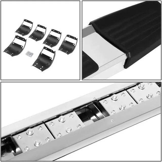 Constructed from high quality grade aluminum frames, you can be sure this running board will withstand the roughest of weather conditions as well as the test of time. They are built tough and are highly corrosion resistant. Getting in and out of your vehicle is easy with the large non-skid molded pads that ensure secure footing. No drill installation! These running boards are very easy to install with the brackets fitting right into the existing factory holes. By not having to not drill in to your vehicle, your time and effort is saved by you.
