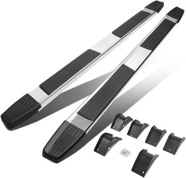 Constructed from high quality grade aluminum frames, you can be sure this running board will withstand the roughest of weather conditions as well as the test of time. They are built tough and are highly corrosion resistant. Getting in and out of your vehicle is easy with the large non-skid molded pads that ensure secure footing. No drill installation! These running boards are very easy to install with the brackets fitting right into the existing factory holes. By not having to not drill in to your vehicle, your time and effort is saved by you.