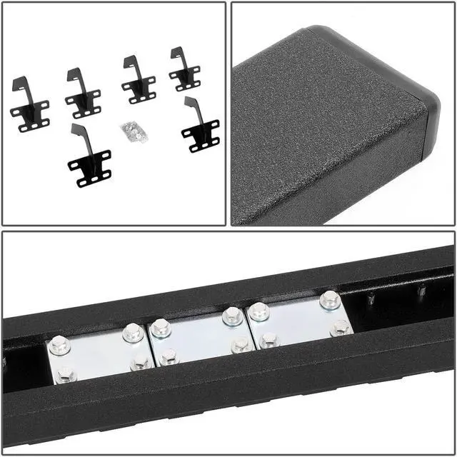 Constructed from high quality grade aluminum frames, you can be sure this running board will withstand the roughest of weather conditions as well as the test of time. They are built tough and are highly corrosion resistant. Getting in and out of your vehicle is easy with the large non-skid molded pads that ensure secure footing. No drill installation! These running boards are very easy to install with the brackets fitting right into the existing factory holes. By not having to not drill in to your vehicle, your time and effort is saved by you.