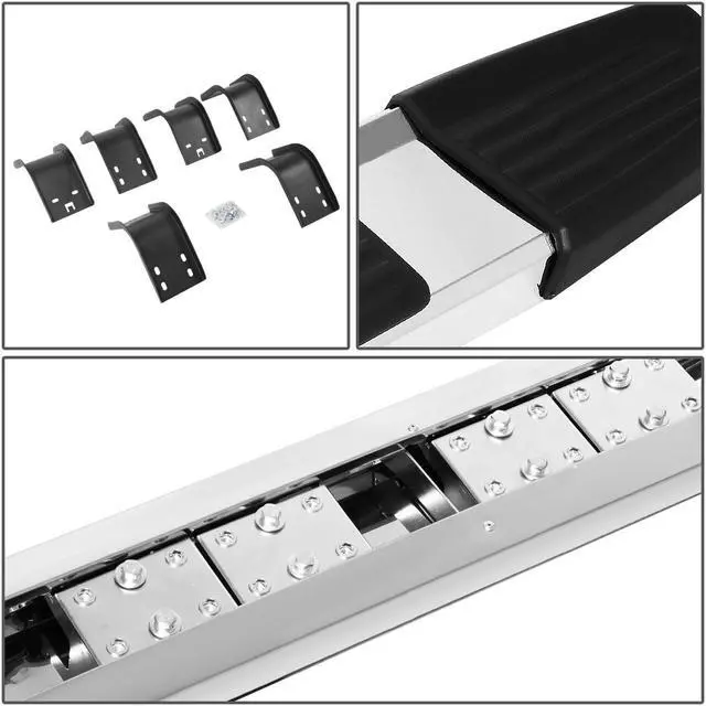 Constructed from high quality grade aluminum frames, you can be sure this running board will withstand the roughest of weather conditions as well as the test of time. They are built tough and are highly corrosion resistant. Getting in and out of your vehicle is easy with the large non-skid molded pads that ensure secure footing. No drill installation! These running boards are very easy to install with the brackets fitting right into the existing factory holes. By not having to not drill in to your vehicle, your time and effort is saved by you.