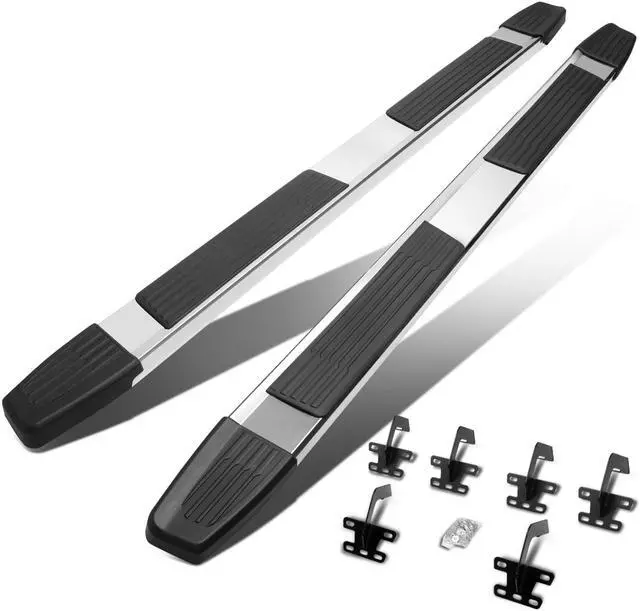 Constructed from high quality grade aluminum frames, you can be sure this running board will withstand the roughest of weather conditions as well as the test of time. They are built tough and are highly corrosion resistant. Getting in and out of your vehicle is easy with the large non-skid molded pads that ensure secure footing. No drill installation! These running boards are very easy to install with the brackets fitting right into the existing factory holes. By not having to not drill in to your vehicle, your time and effort is saved by you.