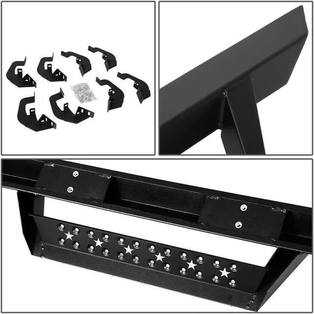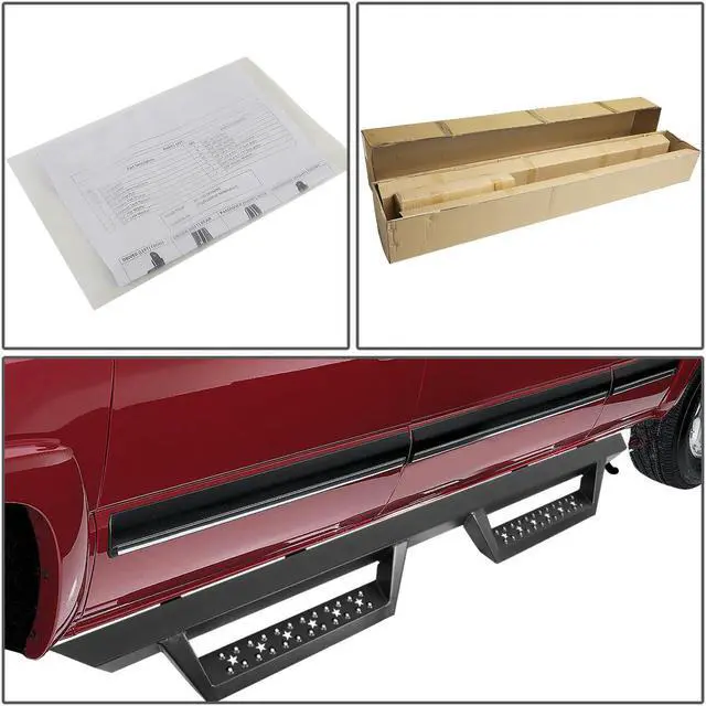 Constructed from high quality grade aluminum frames, you can be sure this running board will withstand the roughest of weather conditions as well as the test of time. They are built tough and are highly corrosion resistant. Getting in and out of your vehicle is easy with the large non-skid molded pads that ensure secure footing. No drill installation! These running boards are very easy to install with the brackets fitting right into the existing factory holes. By not having to not drill in to your vehicle, your time and effort is saved by you.