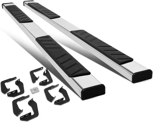 Running boards give your ride a massive boost when it comes to look and utility. Combining the stylish appearance and rugged looks, these inventive running boards are the ideal way to upgrade your truck or SUV. Constructed from high quality grade aluminum frames, you can be sure this running board will withstand the roughest of weather conditions as well as the test of time. They are built tough and are highly corrosion resistant. Getting in and out of your vehicle is easy with the large non-skid molded pads that ensure secure footing. No drill installation! These running boards are very easy to install with the brackets fitting right into the existing factory holes. By not having to not drill in to your vehicle, your time and effort is saved by you.