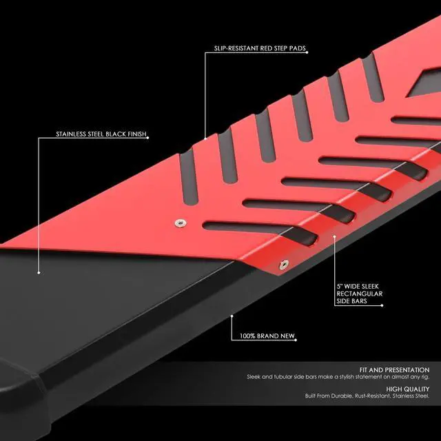 Running boards give your ride a massive boost when it comes to look and utility. Combining the stylish appearance and rugged looks, these inventive running boards are the ideal way to upgrade your truck or SUV. Constructed from high quality grade metal frames, you can be sure this running board will withstand the roughest of weather conditions as well as the test of time. They are built tough and are highly corrosion resistant. Getting in and out of your vehicle is easy with the large non-skid molded pads that ensure secure footing. No drill installation! These running boards are very easy to install with the brackets fitting right into the existing factory holes. By not having to not drill in to your vehicle, your time and effort is saved by you.