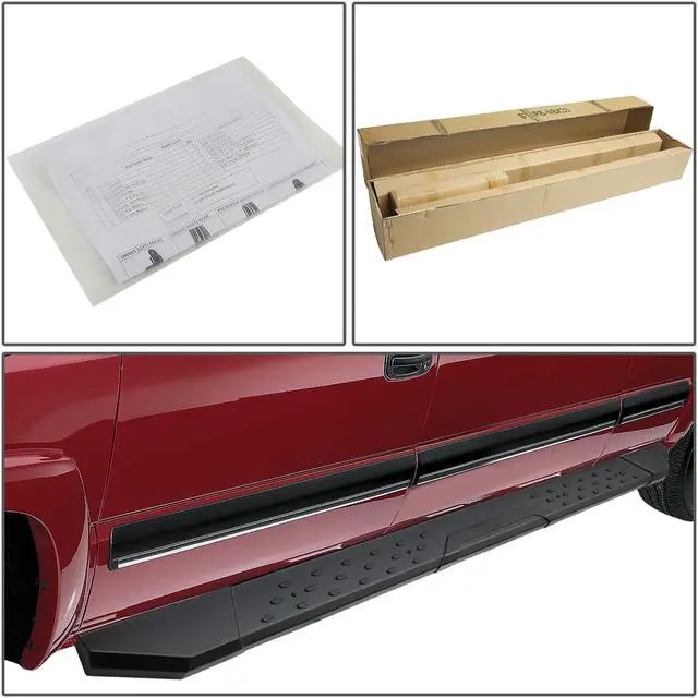 Constructed from high quality grade steel frames, you can be sure this running board will withstand the roughest of weather conditions as well as the test of time. They are built tough and are highly corrosion resistant. Getting in and out of your vehicle is easy with the large non-skid molded pads that ensure secure footing. No drill installation! These running boards are very easy to install with the brackets fitting right into the existing factory holes. By not having to not drill in to your vehicle, your time and effort is saved by you.