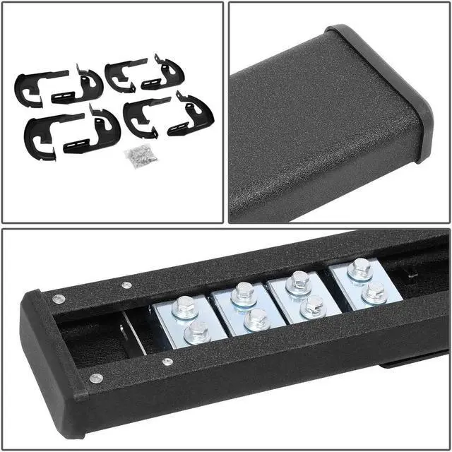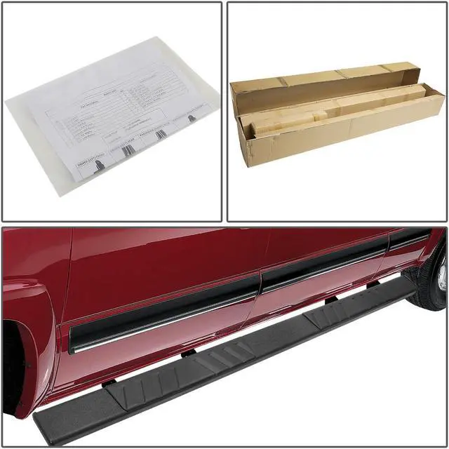 Constructed from high quality grade aluminum frames, you can be sure this running board will withstand the roughest of weather conditions as well as the test of time. They are built tough and are highly corrosion resistant. Getting in and out of your vehicle is easy with the large non-skid molded pads that ensure secure footing. No drill installation! These running boards are very easy to install with the brackets fitting right into the existing factory holes. By not having to not drill in to your vehicle, your time and effort is saved by you.