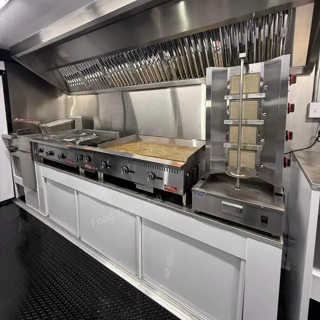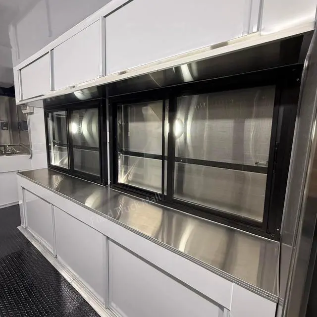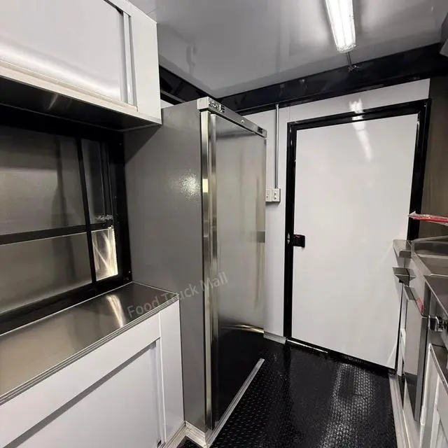 This food trailer and mobile food truck is a towable food truck trailer belonging to utility food trailers. It acts as a fully equipped mobile food trailer, fully equipped food trailer and mobile kitchen food trailer with a fully equipped kitchen, as well as a food trailer with full kitchen equipment and high-efficiency fast food trailer, and this mobile food trailer meets basic commercial catering needs.