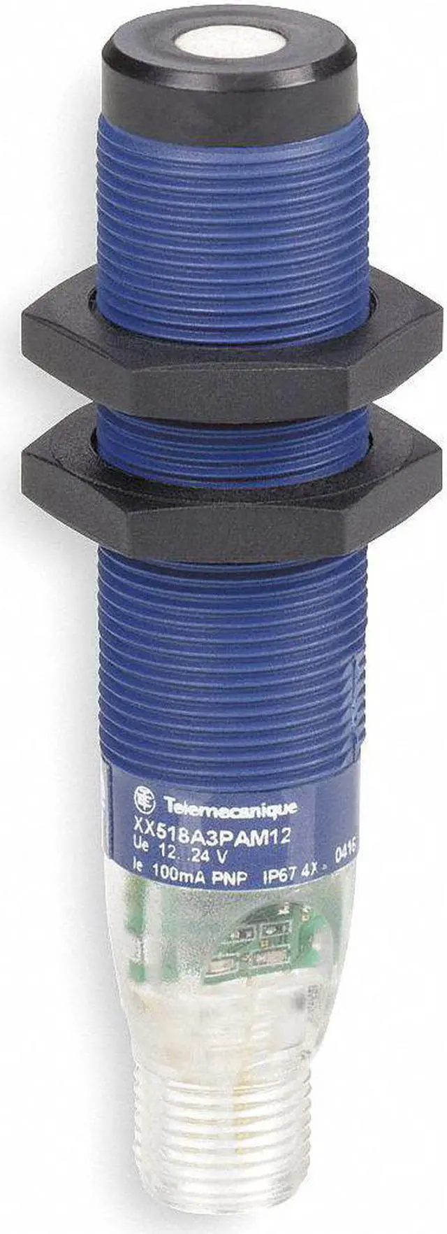 Cylindrical Ultrasonic Sensor, Case Material Plastic, Diameter 18 mm, Detecting Distance 508mm, PNP Output, Circuit Type NO, Max. Load 40 mA, Electrical Connection M12, Length 3.06 in, Width 0.71 in, Power Required 12 to 24V DC, NEMA Rating 4X, IP Rating IP67, Operating Frequency 300 kHz, Standards CE, EN 60947, REACH, UL Listed, Operating Temp. Range -22 Degrees to 152 Degrees F, Description/Special Features Tamper Proof. This item has been restricted from sale in the following state (s): []