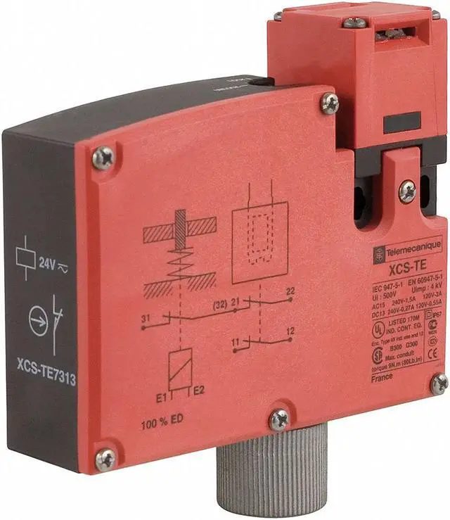 Safety Interlock Switch, Actuating Key, Solenoid Locking, Contact Form 2NC, Actuator Length Key Dependent, Connection Type 1/2 in NPT Conduit, AC Contact Rating 6 A @ 300 V, Series XCSTE, DC Contact Rating 3 A @ 24 V, Solenoid Voltage 24 V AC/DC, Height 1.3 in, Width 4.33 in, Depth 3.68 in, NEMA Rating 12, 4, 4X, IP Rating IP67, Operating Temp. Range -13 Degrees to 158 Degrees F, Conduit Size 1/2 in NPT, Body Material Polyamide. This item has been restricted from sale in the following state (s): []