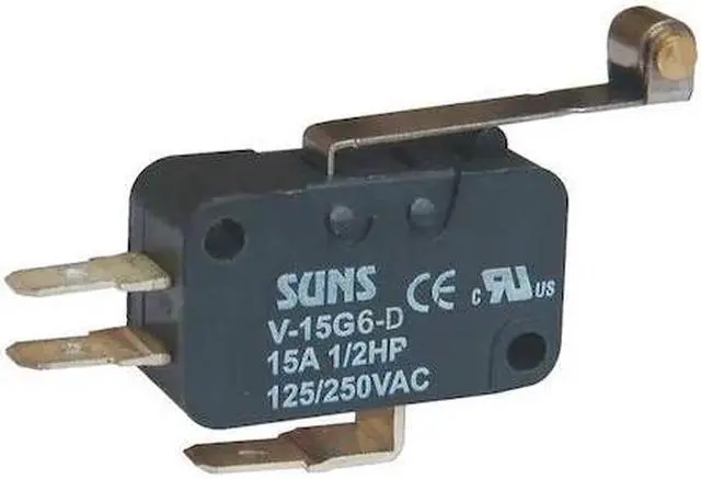 Miniature Snap Action Switch, Lever, Long, Roller, AC Contact Rating - Snap Action Switch 15 A @ 240 V, Contact Form- Switches SPDT, Lever Actuator Length - Snap Action Switch 1 in, Height - Snap Action Switch 0.62 in, Width - Snap Action Switch 1.09 in, Depth - Snap Action Switch 0.41 in, Electrical Connection - Snap Action Switch 3/16 in Quick Connect, Mounting Dimension - Snap Action Switch 0.87 in Centers, Series V. This item has been restricted from sale in the following state (s): []