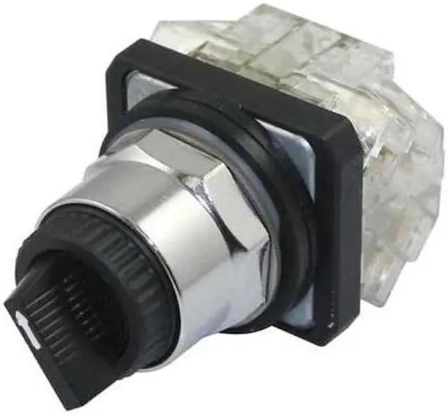 Selector Switch, 30 mm, 2 Position, Maintained/Maintained Action, 2NO/2NC Contact Form, Type of Operator Lever, Color Black, No Key Key Removal, Operator Head Material Plastic, Basic Material Metal, Bezel Material Zinc, Bezel Color Silver, Contact Rating 10A @ 600V AC, 2.5A @ 600DC, NEMA Contact Rating Designation A600/Q600, NEMA Rating 13, 4, IP Rating IP65, Cam E, Switch Operation @ Position A XOXO, Switch Operation @ Position B OXOX, Switch Operation @ Position C No Third Position. This item has been restricted from sale in the following state (s): []