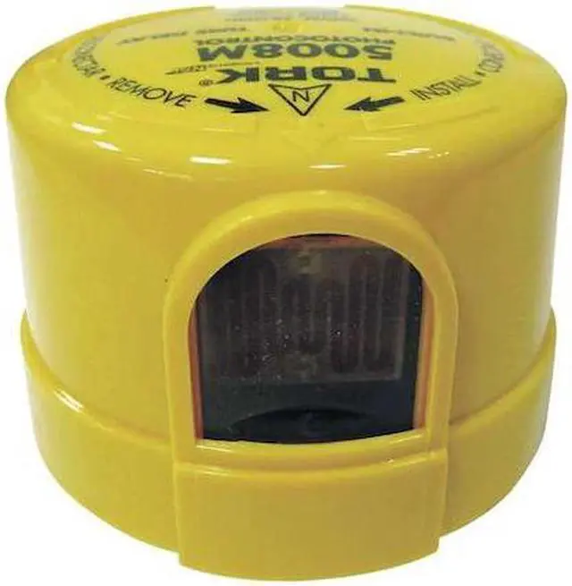 Photocontrol, Mounting Turn-Lock, Voltage 480V AC, Max. Wattage 1, 800, Max. Incandescent Amps 15 A, Max. Ballast Amps 15 A, 10.0 to 20.0 Foot Candles On, 30 to 60 Foot Candles Off, Color Yellow, Temp. Range -40 Degrees to 158 Degrees F, Length 3 3/8 in, Width 3 3/8 in, Depth 2 3/8 in, Enclosure Type Raintight, Contact Form SPST, Housing Material Polycarbonate, Setting Dusk to Dawn. This item has been restricted from sale in the following state (s): []