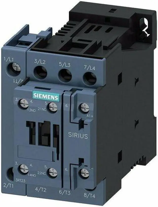 IEC Magnetic Contactor, Auxiliary Contact Form 1NO/1NC, NEMA Enclosure Rating No Enclosure, NEMA Size Not Applicable, Coil Voltage 24V DC, Number of Poles 4, Full Load Current - Inductive 16 A, Full Load Current - Resistive 35 A, Reversing Capability Non-Reversing, Overall Height 5.1 in, Overall Width 4.7 in, Terminal Connection Type Screw Terminals, Frame Size S0, Mounting Style DIN Rail, Surface, Series SIRIUS 3RT23, Number of Auxillary Contacts 2, Contactor Style IEC. This item has been restricted from sale in the following state (s): []