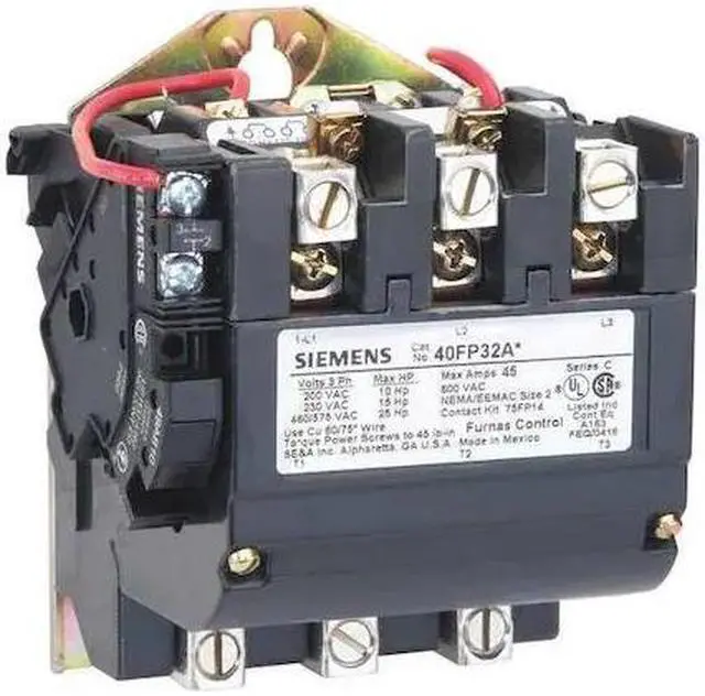 NEMA Magnetic Contactor, Auxiliary Contact Form 1NO, NEMA Enclosure Rating No Enclosure, NEMA Size 2, Coil Voltage 190-220/220-240V AC, Number of Poles 3, Full Load Current - Inductive 45 A, Full Load Current - Resistive Not Rated, Reversing Capability Non-Reversing, Overall Height 4.88 in, Overall Width 4.25 in, Auxiliary Contact Module Capacity 8, Terminal Connection Type Screw Terminals, Mounting Style Surface, Series 40, Number of Auxillary Contacts 1, Contactor Style NEMA. This item has been restricted from sale in the following state (s): []