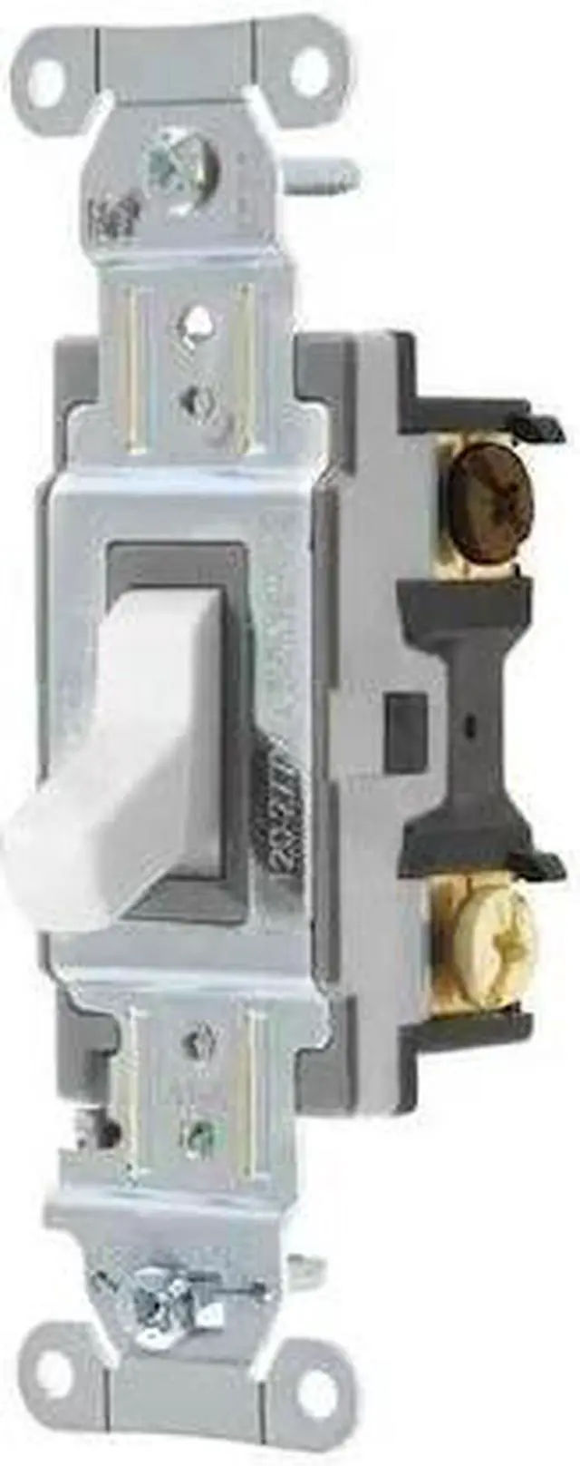 Wall Switch, Color White, Current Rating 15 A, Switch Function Maintained, Switch Type 3-Way, Voltage Rating 120/277V AC, Wiring Method Back, Side, Horsepower Rating 1/2 hp, Locking Style Not Applicable, Maximum Wire Size 10 AWG, Minimum Wire Size 14 AWG, Number of Switches 1, Resistance Properties Shatter and Crack Resistant, Corrosion Resistant, Impact Resistant, Standards UL Listed, Switch Style Toggle, Wire Connection Type Screw Terminals, Housing Material Nylon, Market Commercial. This item has been restricted from sale in the following state (s): []