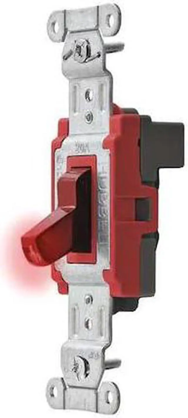 Pilot Light Wall Switch, Color Red, Current Rating 20 A, Pilot Light Yes, Switch Function Maintained, Switch Type Single Pole, Voltage Rating 120/277V AC, Wiring Method Back, Horsepower Rating 2 hp, Locking Style Not Applicable, Number of Switches 1, Resistance Properties Impact Resistant, Standards UL Listed, Switch Style Toggle, Wire Connection Type Modular Wiring, Housing Material Thermoplastic, Market Industrial, Maximum Operating Temperature 167 Degrees F. This item has been restricted from sale in the following state (s): []