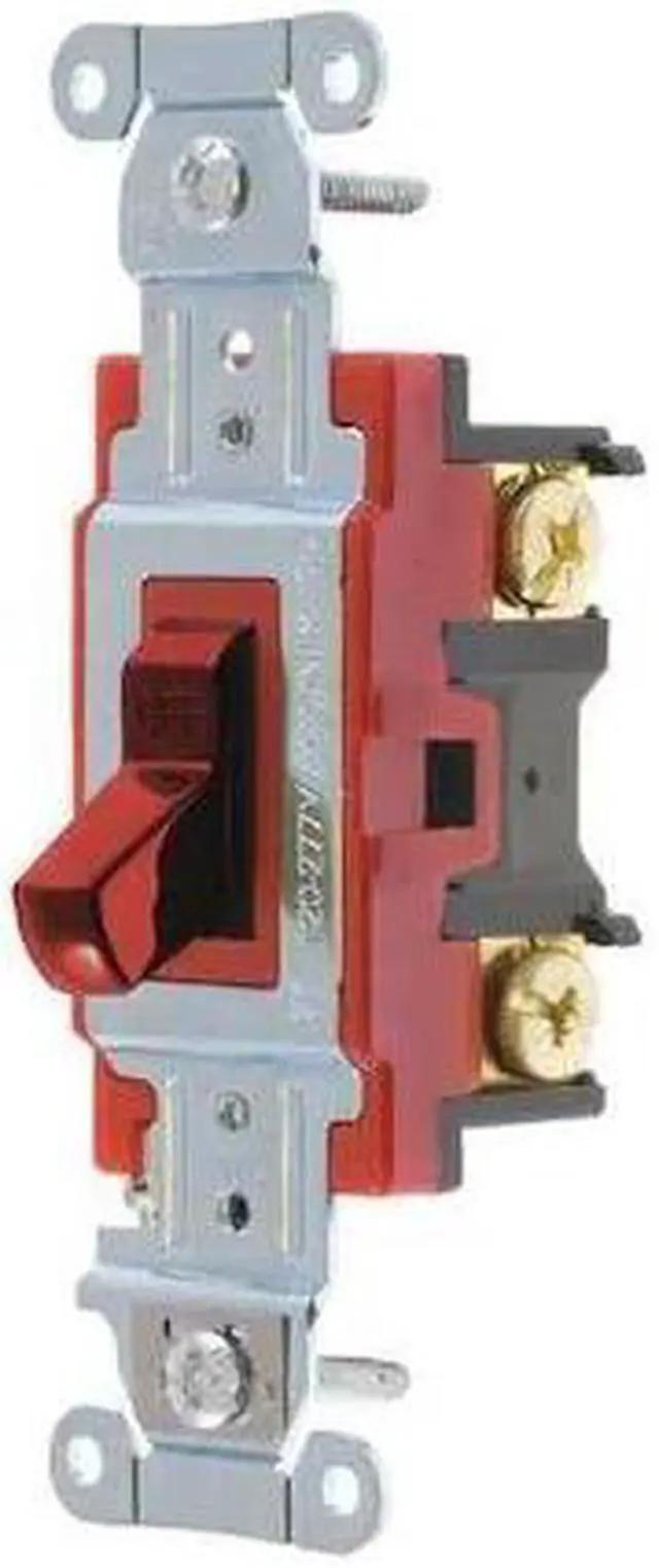 Wall Switch, Color Red, Current Rating 20 A, Switch Function Maintained, Switch Type Single Pole, Voltage Rating 120/277V AC, Wiring Method Back, Side, Horsepower Rating 2 hp, Locking Style Not Applicable, Number of Switches 1, Standards UL/CSA, Switch Style Toggle, Wire Connection Type Screw Terminals, Features Brass and Nickel Plated Steel Ground Terminal, Market Industrial, Overall Height 1.7 in. This item has been restricted from sale in the following state (s): []