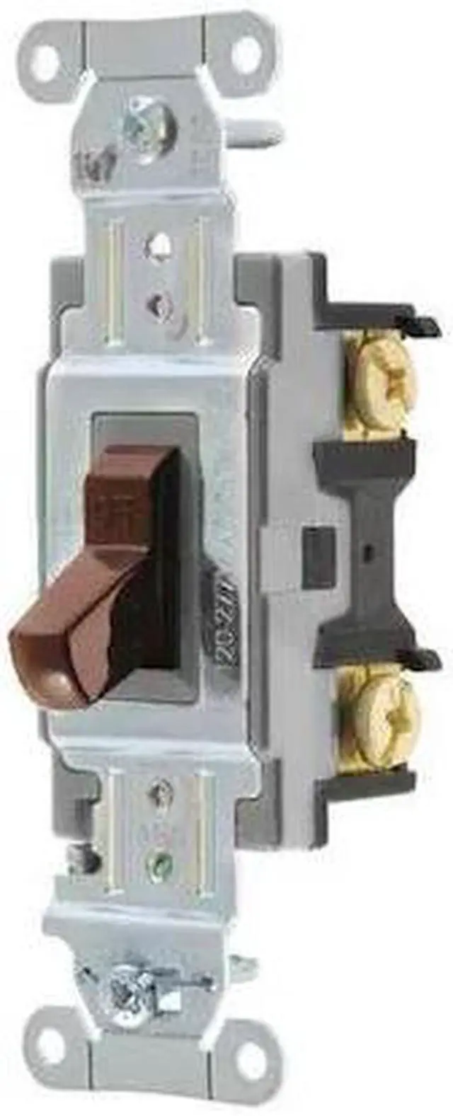Wall Switch, Color Brown, Current Rating 15 A, Switch Function Maintained, Switch Type Single Pole, Voltage Rating 120/277V AC, Wiring Method Back, Side, Horsepower Rating 2 hp, Locking Style Not Applicable, Number of Switches 1, Standards NEMA WD-1, UL20, Switch Style Toggle, Wire Connection Type Screw Terminals, Market Commercial, Overall Height 1.7 in. This item has been restricted from sale in the following state (s): []