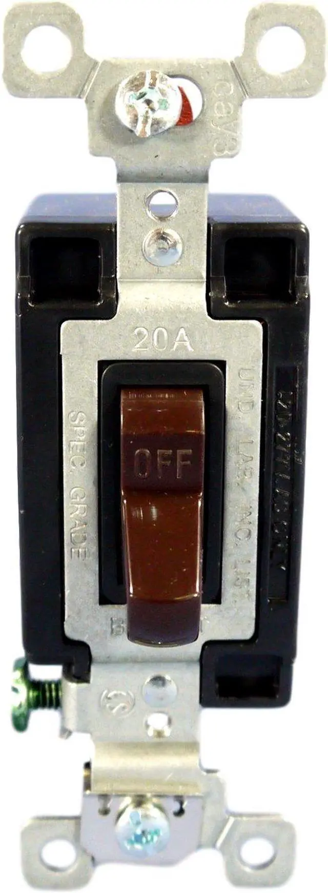 Wall Switch, Color Brown, Current Rating 20 A, Switch Function Maintained, Switch Type Single Pole, Voltage Rating 120/277V AC, Wiring Method Back, Side, Horsepower Rating 2 hp, Locking Style Not Applicable, Number of Switches 1, Standards NEMA WD-1, UL20, Switch Style Toggle, Wire Connection Type Screw Terminals, Market Commercial, Overall Height 1.7 in. This item has been restricted from sale in the following state (s): []