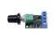 The power switch and output voltage of the module are controlled by a potentiometer.