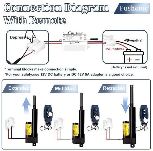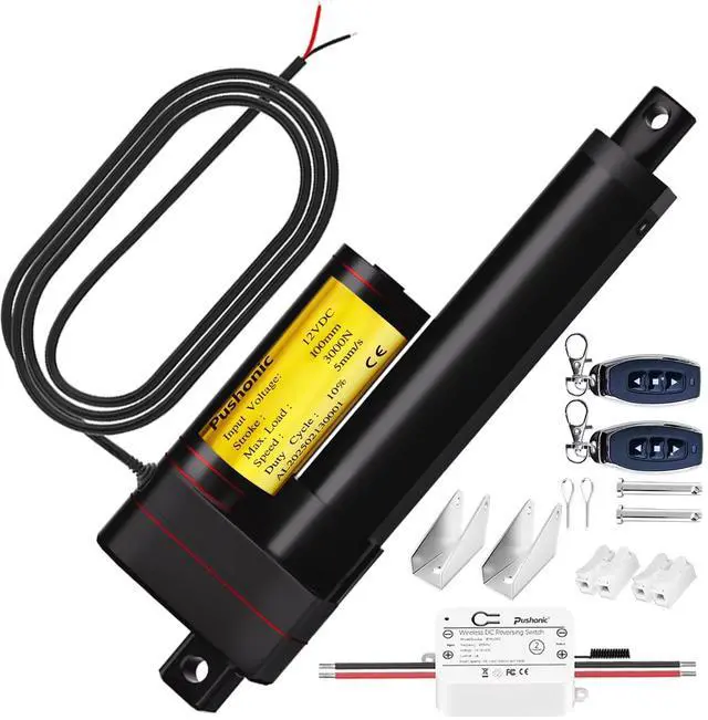 - Motion Controller kit: The actuator kit includes two metal mounting brackets and a DC reversing switch with 2 remote controls,port clips for easy setup.The linear actuator stays securely in place during movement, making it suitable for replacing a double-acting linear actuator or for you automation projects