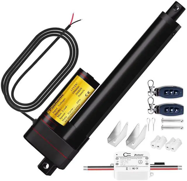 - Motion Controller kit: The actuator kit includes two metal mounting brackets and a DC reversing switch with 2 remote controls,port clips for easy setup.The linear actuator stays securely in place during movement, making it suitable for replacing a double-acting linear actuator or for you automation projects