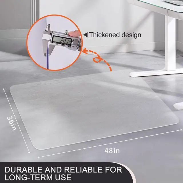 DIMENSIONS: Large 36" x 48" rectangular mat with 1/8" thickness provides ample coverage for office chairs and desk areas