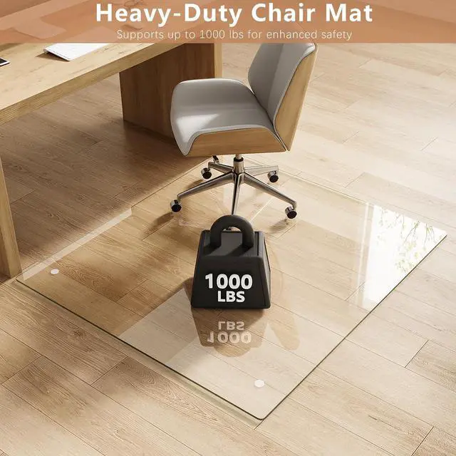 Ultimate Floor Protection Designed for maximum durability, this tempered glass mat boasts an impressive 1, 000-pound weight capacity. As a reliable office chair floor protector, it acts as a sturdy barriereffectively preventing permanent indentations on carpets and shielding hard floors from scratches. Perfect for high-traffic use, its the ideal office chair mat for demanding workspaces.